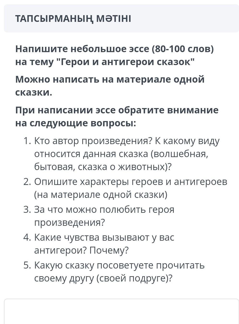 Напишите небольшое эссе (80-100 слов) на тему "Герои и антигерои сказок"