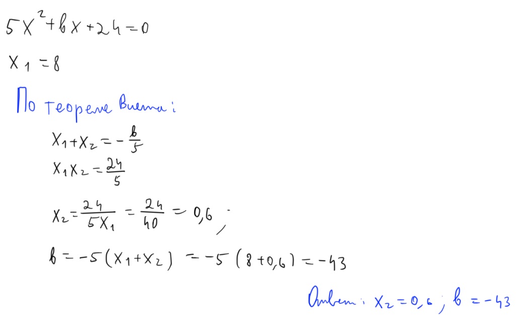 Один из корней уравнения 5х²+bх+24=0 равен 8.Найдите другой корень и коэффициент b.