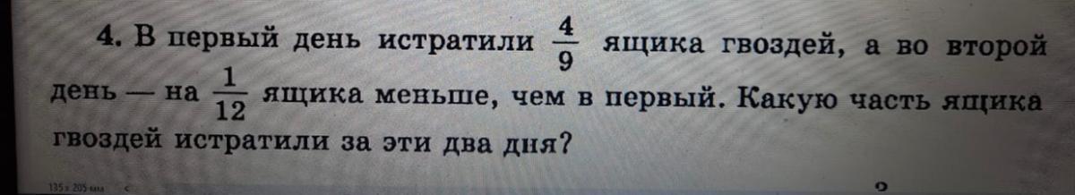 Ответ: За два дня истратили двадцать девять тридцать шестых части ящика гвоздей.