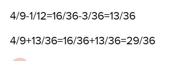 4/9 + 13/36 = 16/36 + 13/36 = (16 + 13)/36 = 29/36;