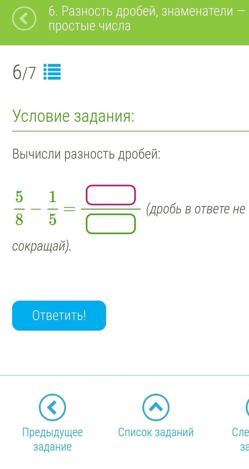 5/8 - 1/5 = 25/40 - 8/40 = 17/40