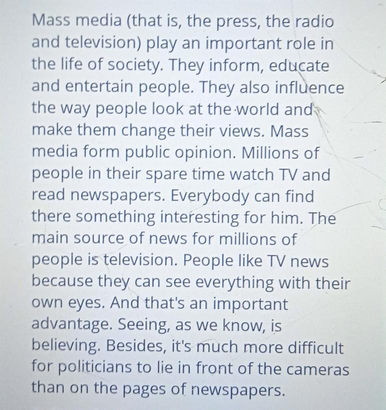 Объяснение: потому что в тексте написано что mass media играет важную роль в обществе.