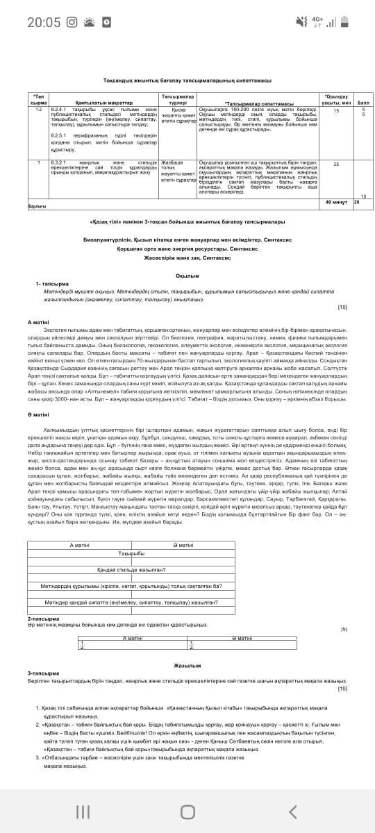 1. Мәтіндерді оқып, оларды тақырыбы, құрылымы, стилі, мақсатты аудиториясы, тілдік ерекшелігі тұрғысынан салыстырыңыз.