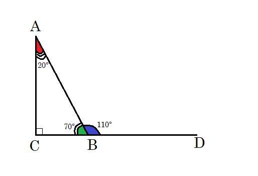 ⇒ ∠BAC = 90° - ∠ABC = 90° - 70° = 20°.