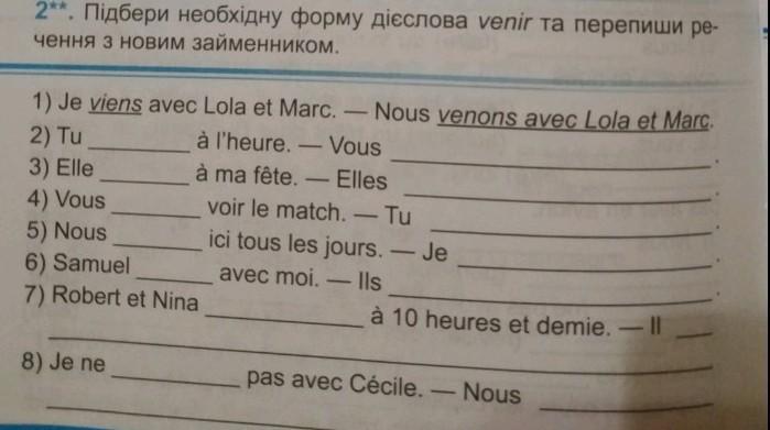 7) Robert et Nina viennent à 10 heures et demie. - Il vient à 10 heures et demie.