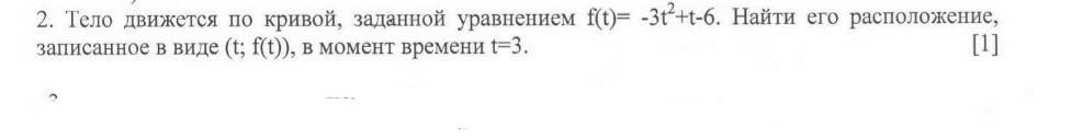 Тело движется по кривой, заданной уравнением f(t) = -3t² + t - 6.