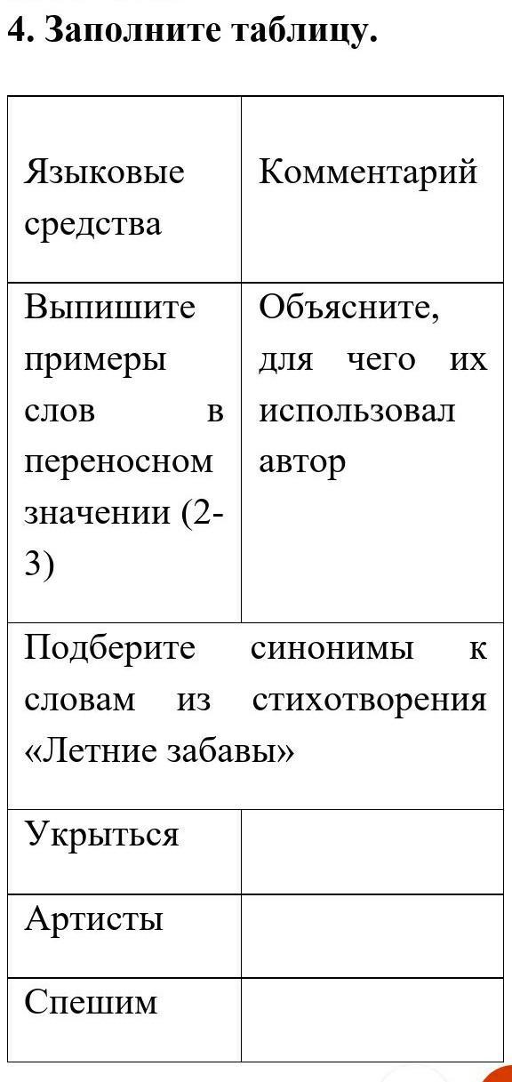 Подберите синонимы к словам из стихотворения «Летние забавы»