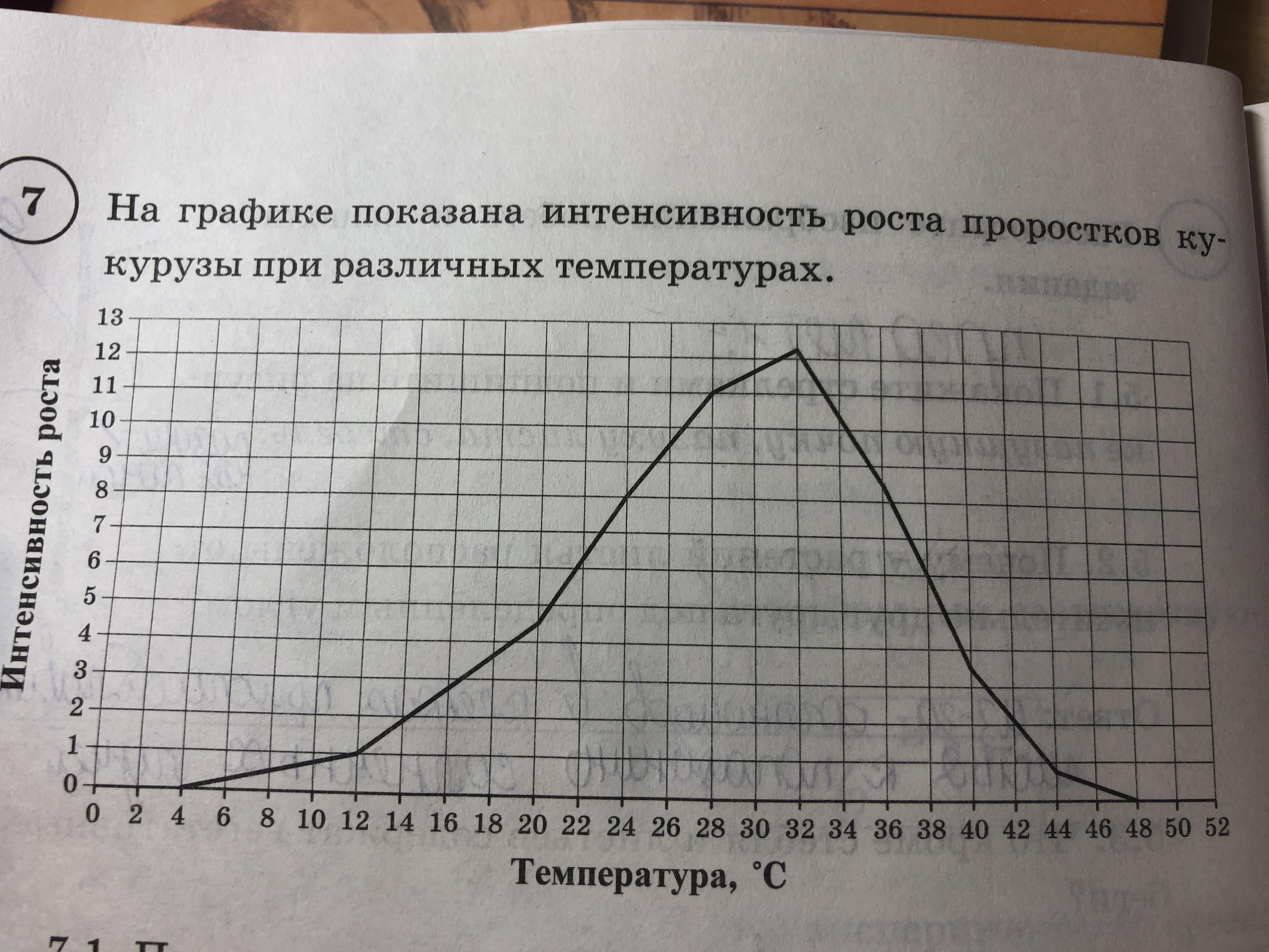 На графике показана интенсивность роста проростков кукурузы при различных температурах.