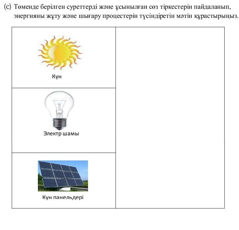 (c) Төменде берілген суреттерді және ұсынылған сөз тіркестерін пайдаланып,
