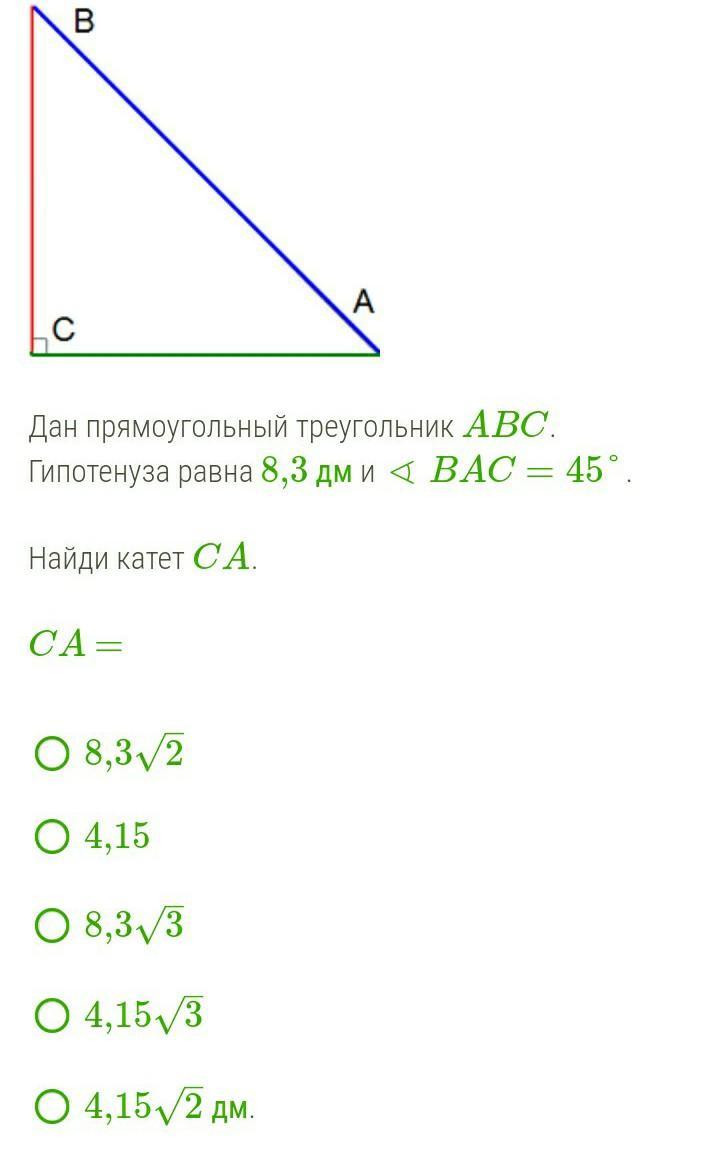 CA=8,3√2/2=4,15√2дм