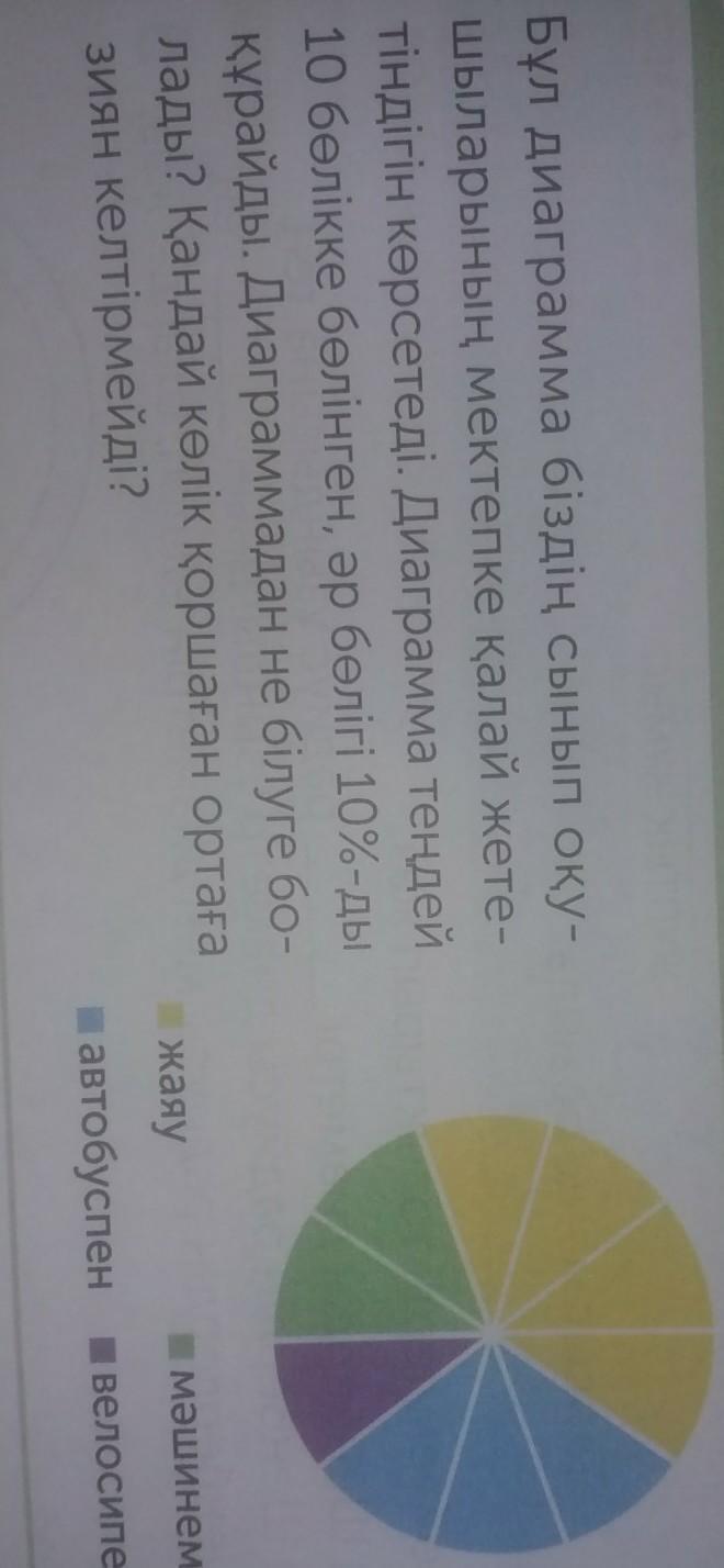 пешком 40%, автобус 30%, машина 20%, велосипед 10%