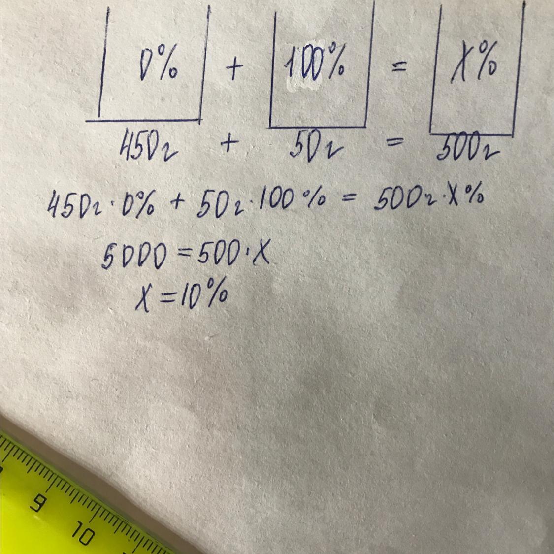 Рассчитайте массовую долю растворённого вещества, если в 450 г воды растворили 50г соли.