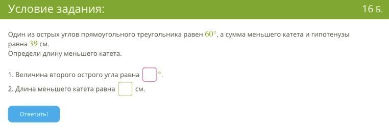 1. Величина второго острого угла равна