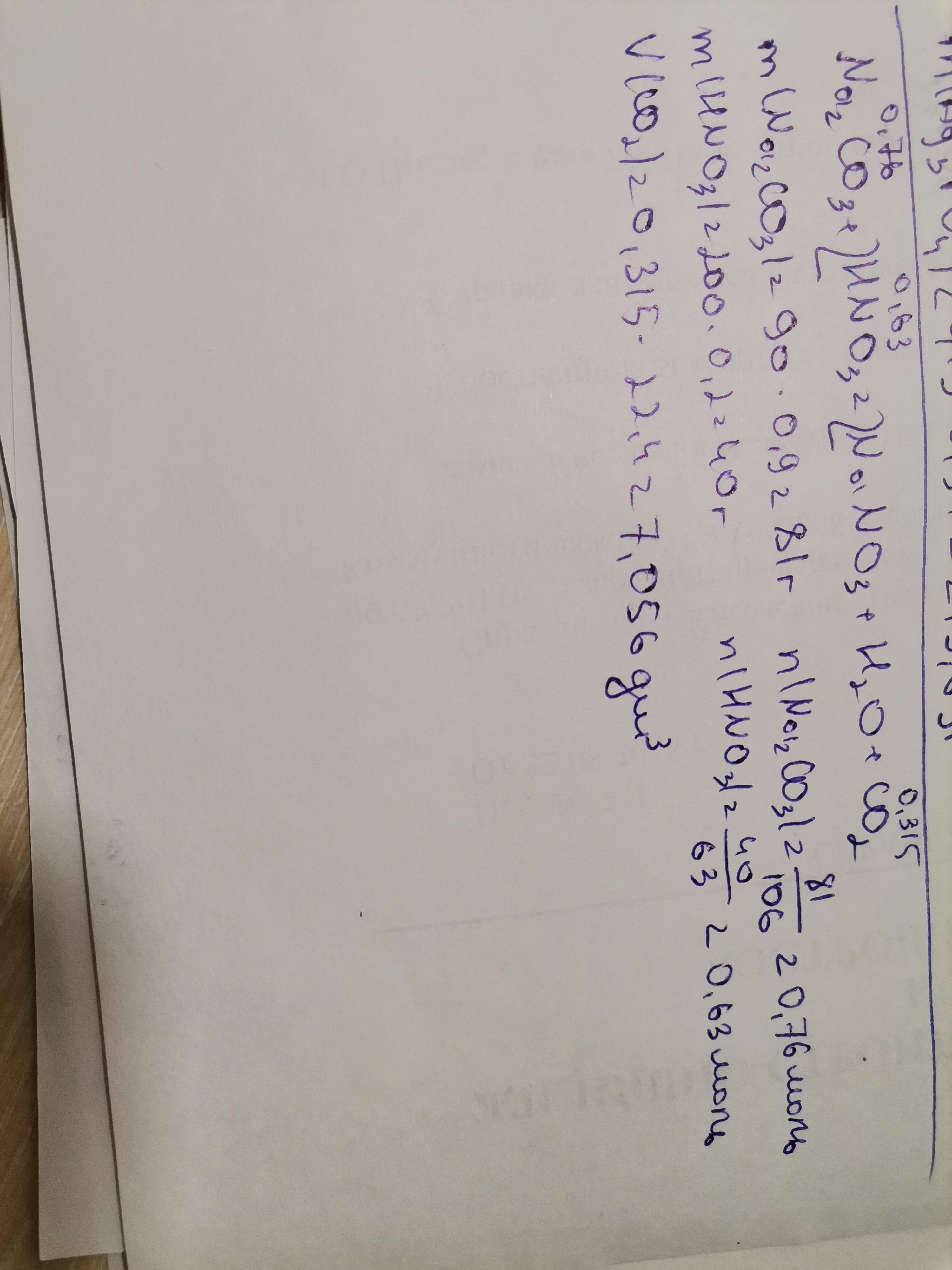 Карбонат натрия массой 90г, которые содержат 10% примесей, обработали 20% раствором азотной кислоты, массой 200г .Определить объем полученного газа