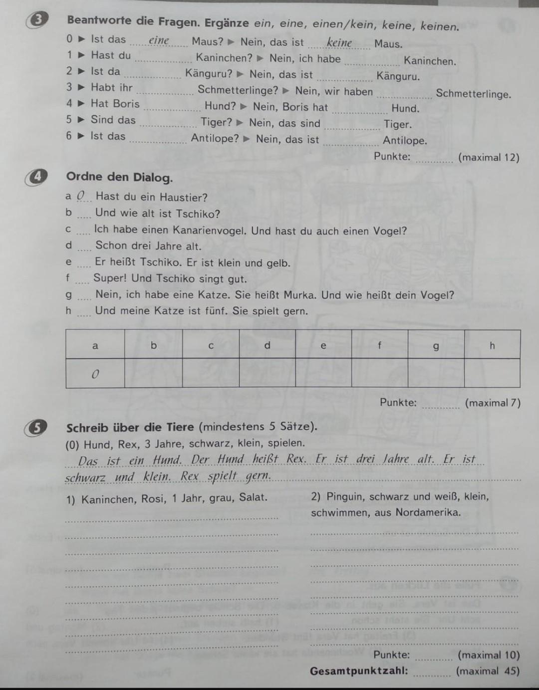 5) Das ist ein Kaninchen. Das Kaninchen heißt Rosi. Es ist eins Jahre alt. Es ist grau. Rosi isst Salat gerne.