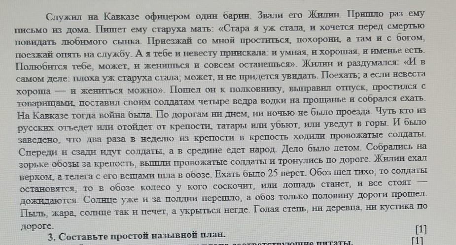 1. Служил на Кавказе офицером один барин. Звали его Жилин.