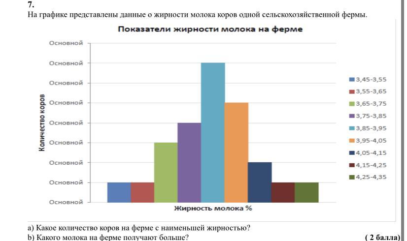 ПОМОГИТЕЕЕЕ СРОЧНООО!!!На графике представлены данные о жирности молока коров одной сельскохозяйственной фермы.