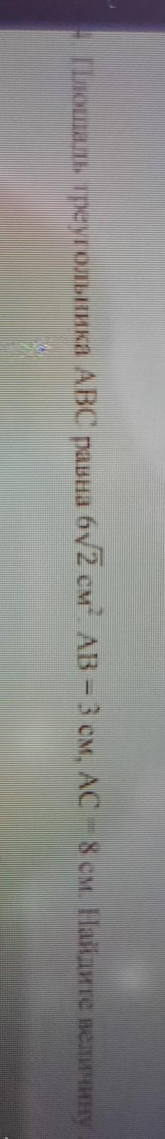 площадь треугольника ABC равна 6корень2 см^2 AB равно 3 см AC равно 8 см Найдите величину угол BAC
