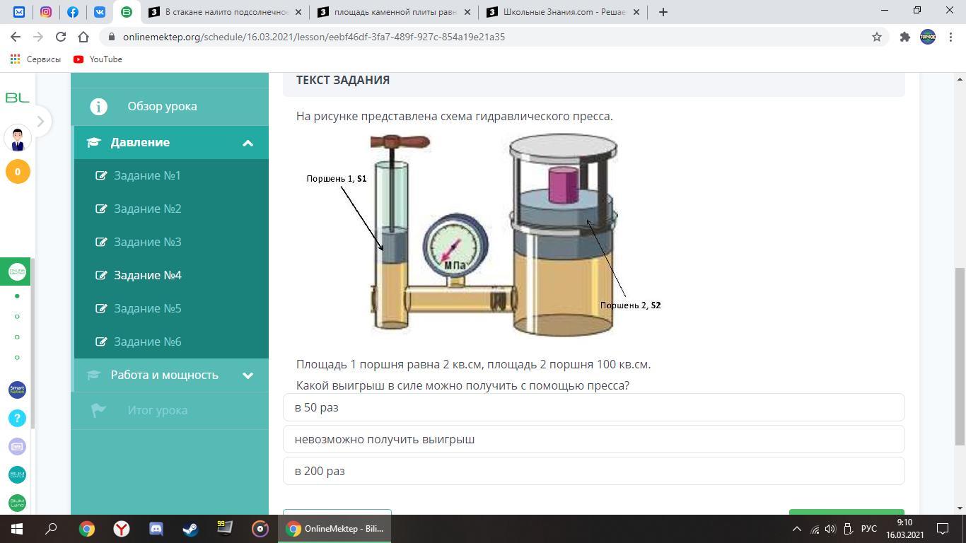 Площадь 1 поршня равна 2 кв.см площадь 2 поршня 100 кв.см. Какой выигрыш в силе можно получить с помощью пресса