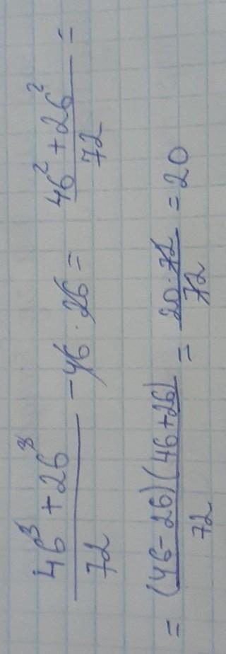 Вычислите наиболее рациональным способом: 46^3+26^3/ 72----------46×26