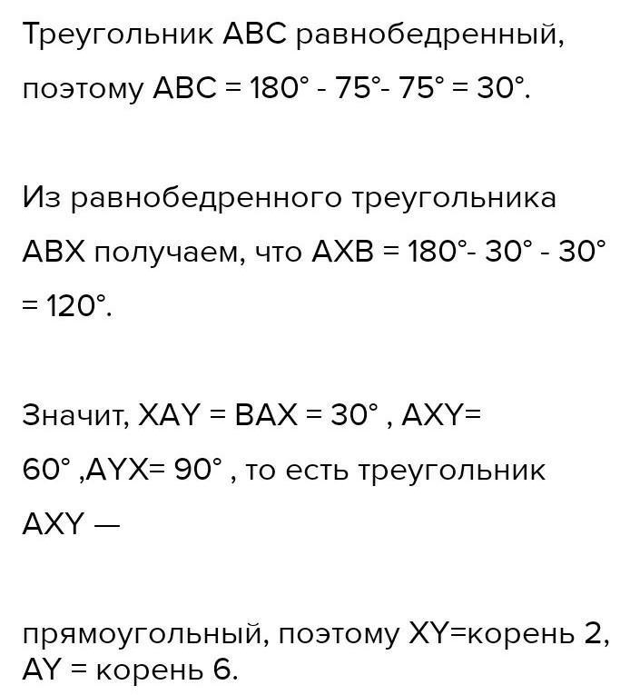 так, что точка Х лежит между точками Ви Y, AX = BX и ZBAX =ZYAX. Найдите длину