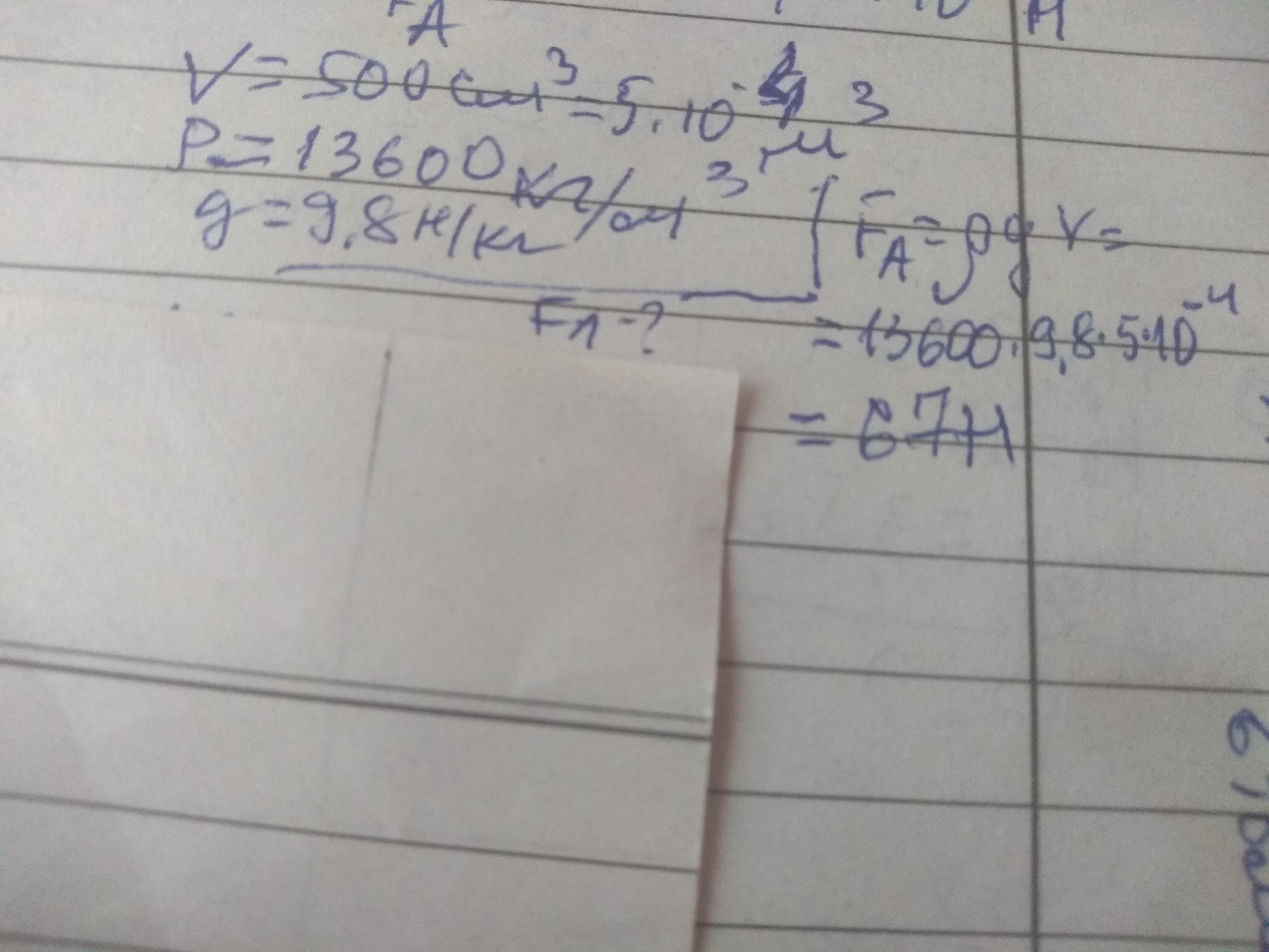 Какая архимедова сила действует на куб объемом 500 см3, плотно