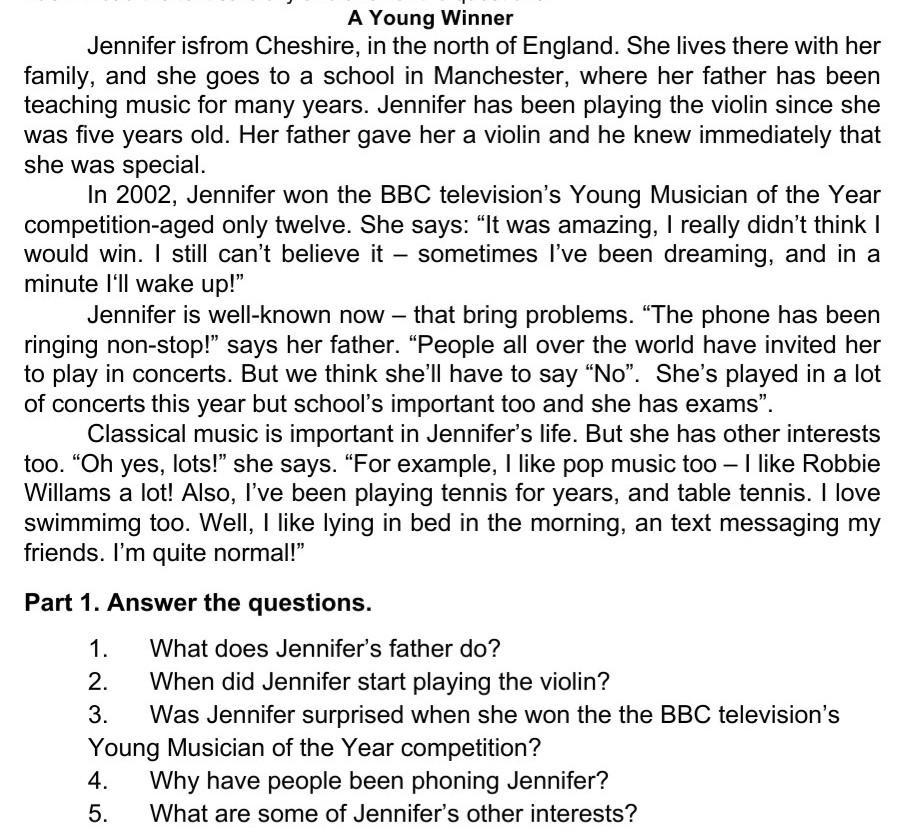 3. Was Jennifer surprised when she won the the BBC television’s Young Musician of the Year competition?