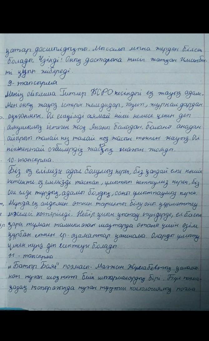 11. «Ел мүддесін ойлаған Баян батыр - ерліктің отаншылдықтың үлгісін деген пікірді қалай түсіндіресіз? Шығармадан дәлелдер келтіре отырып эссе жазыңыз.