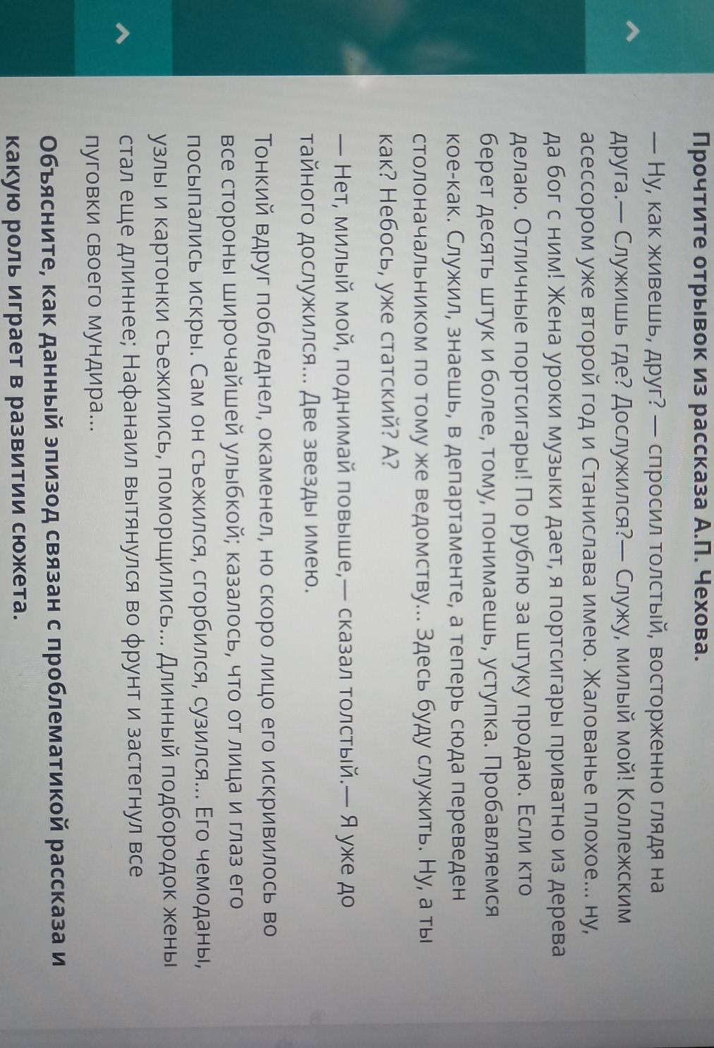 Прочитайте отрывок из рассказа Чехова. Объясните как данный эпизод связан с проблематикой рассказа и какую роль играет в развитии сюжета.