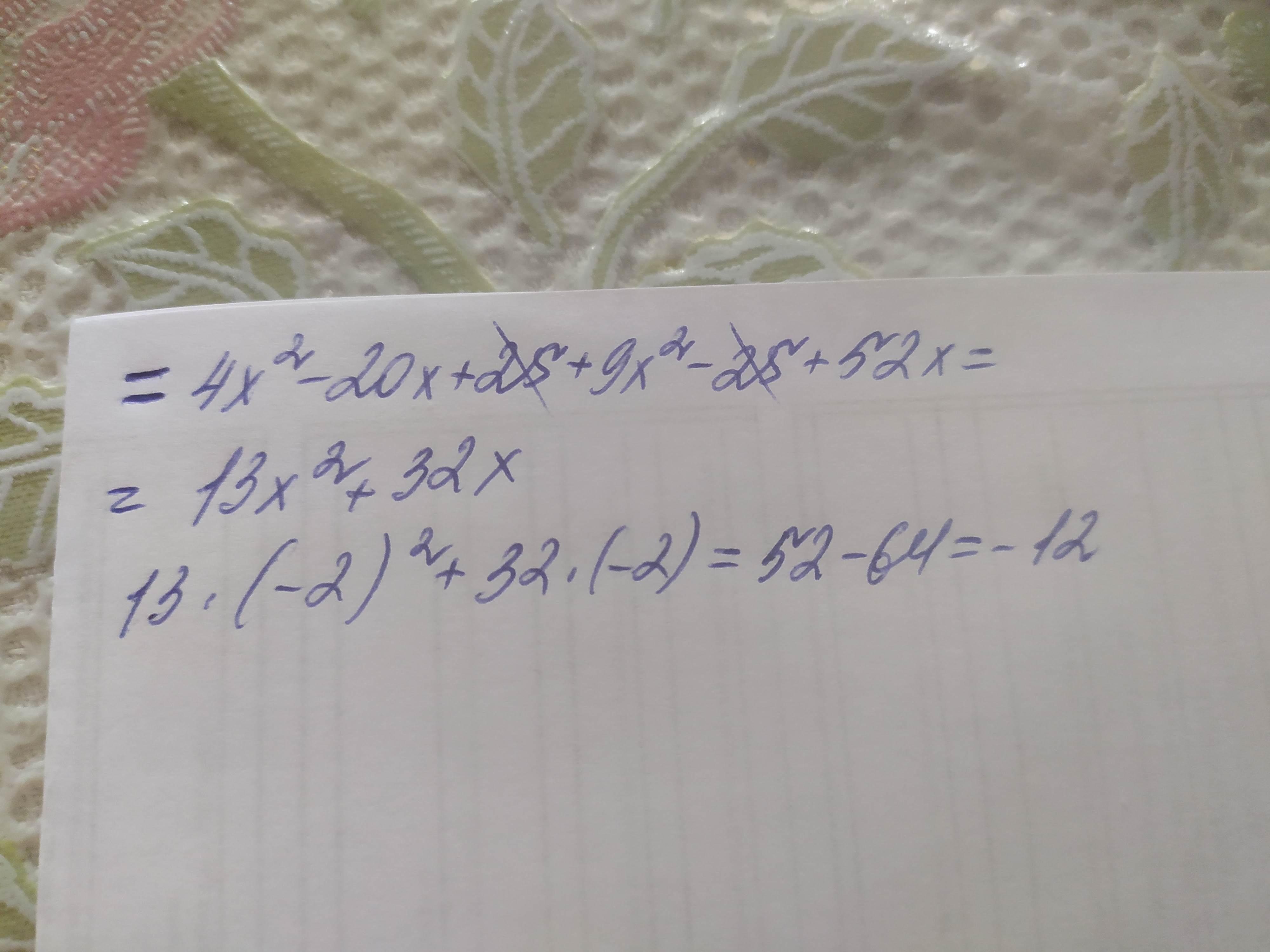 (2x – 5)2 + (3х – 5)(3х + 5) + 52х при х = -2 равно -12. [1]