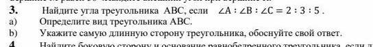 a) Определите вид треугольника АВС b) Укажите самую длинную сторону треугольника, обоснуйте свой ответ.