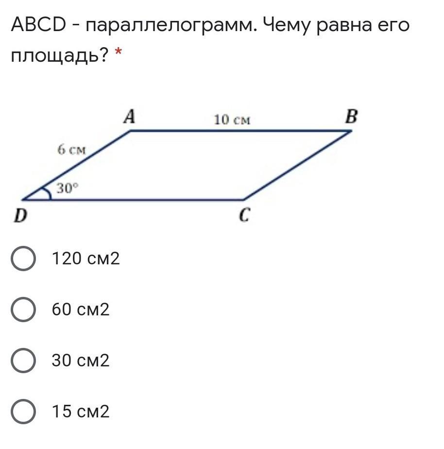 5 ) ABCD - параллелограмм. Чему равна его площадь? *