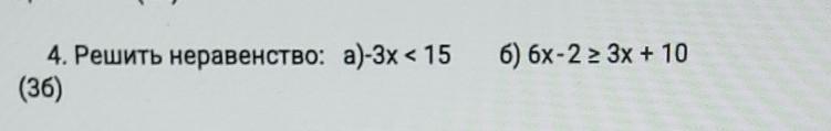 а)-3X < 15 б)6x-2 ≥ 3x+10