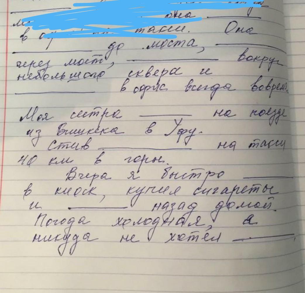 Я не понимаю как ты не додумалась вставить слова в эти пропуски.