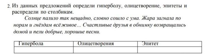 Эпитет: палило нещадно; счастливые друзья; добрые,хорошие песни