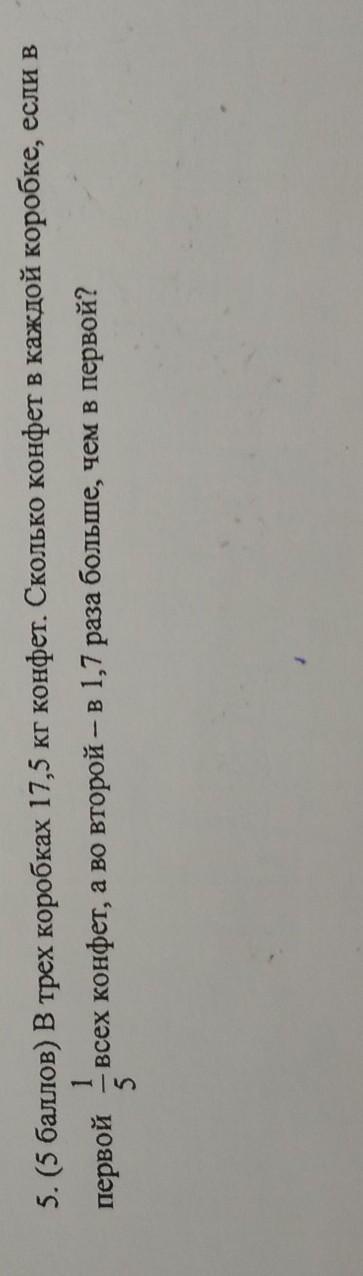 5. (5 баллов) В трех коробках 17,5 кг конфет. Сколько конфет в каждой коробке, если в