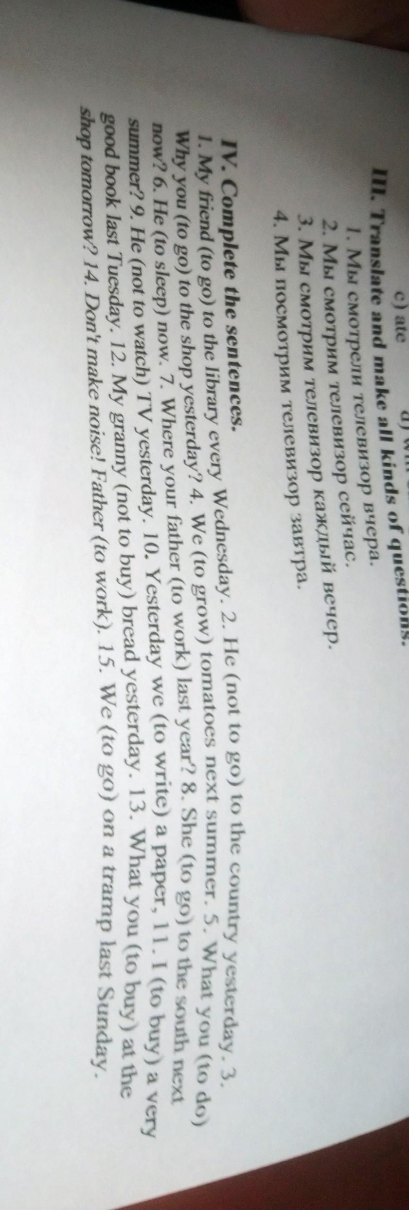 задание ниже. 1. goes,2. didn't go,3.go,4.grow,5.doing,6.is slepping,7.works,8.goes,9.didn't watch,10.writed,11.bought,12.didn't buy,13.buy,14.works,15.went