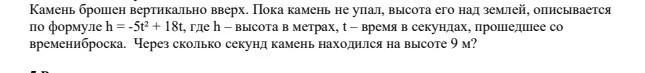 времениброска. Через сколько секунд камень находился на высоте 9 м?
