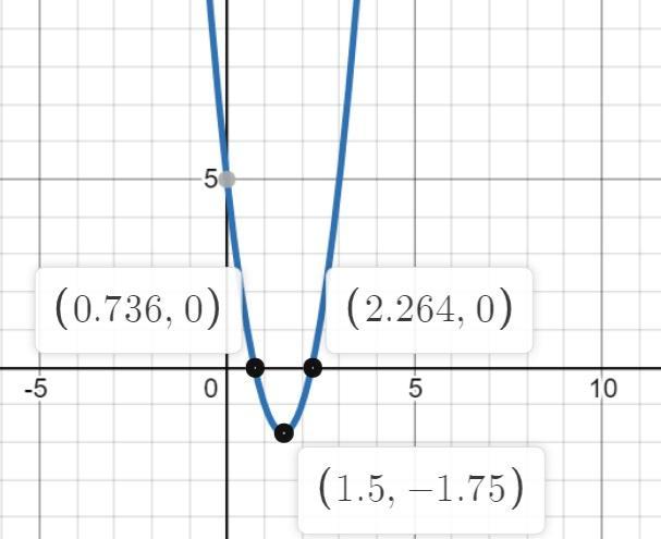 y=3(1.5)²-9*1.5+5 = 3*2.25-13.5+5 = 6.75 - 13.5 + 5 = -1,75