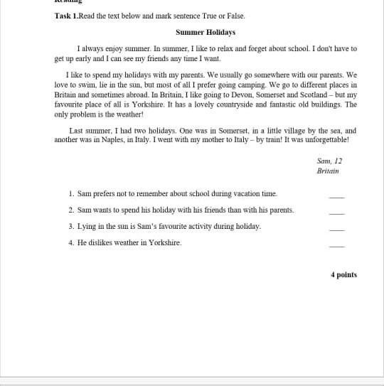 1)T (He forgets about school during summer holidays)