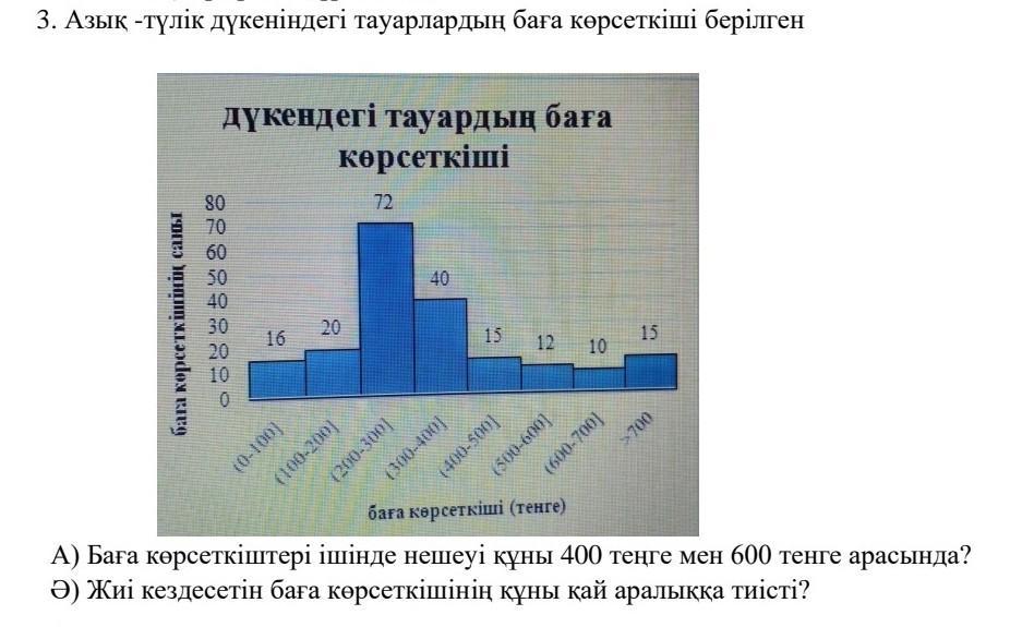 А) какая из ценовых показателей стоит от 400 тенге до 600 тенге?