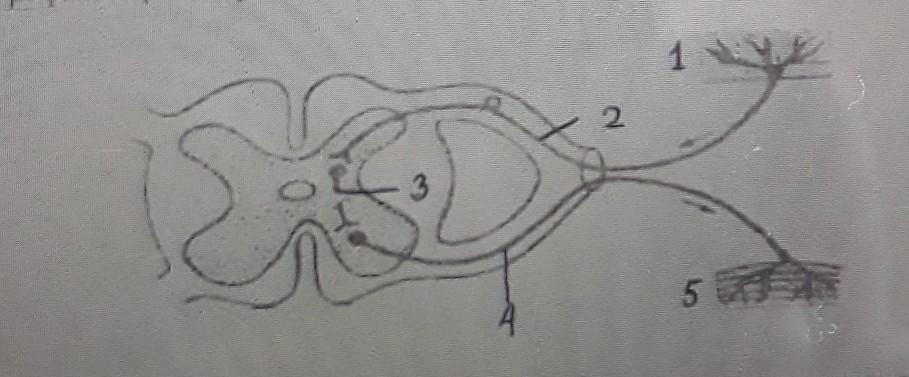 5 — исполнительный орган — отвечает на раздражитель (мышца сокращается, железа выделяет секрет и тд)