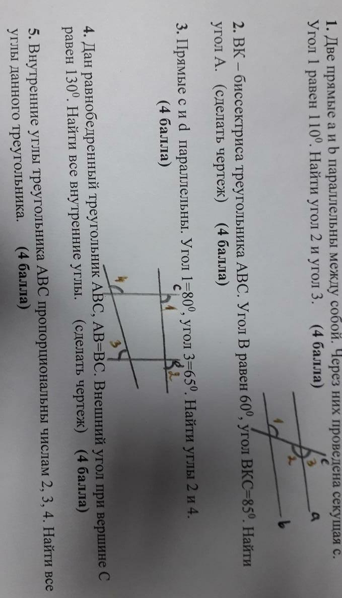 1) угол 3 будет 70°, посколько а и б параллельные и разделены секущей с. сумма таких углов 180.