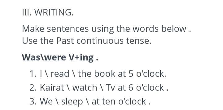 1. i was reading the books at 5 o'clock.