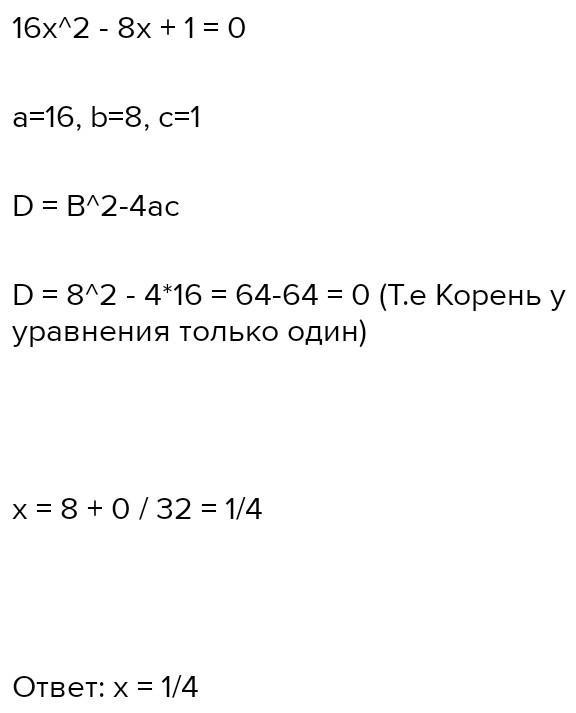 так как дискриминант равен 0, то у уравнения 1 корень и он равен: