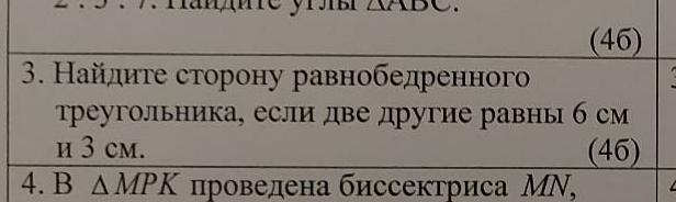 Значит неизвестная сторона 6 см так как это равнобедренный треугольник