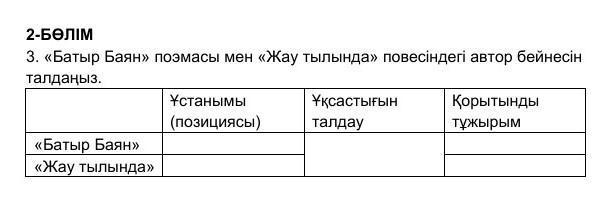 3. «Батыр Баян» поэмасы мен «Жау тылында» повесіндегі автор бейнесін талдаңыз.