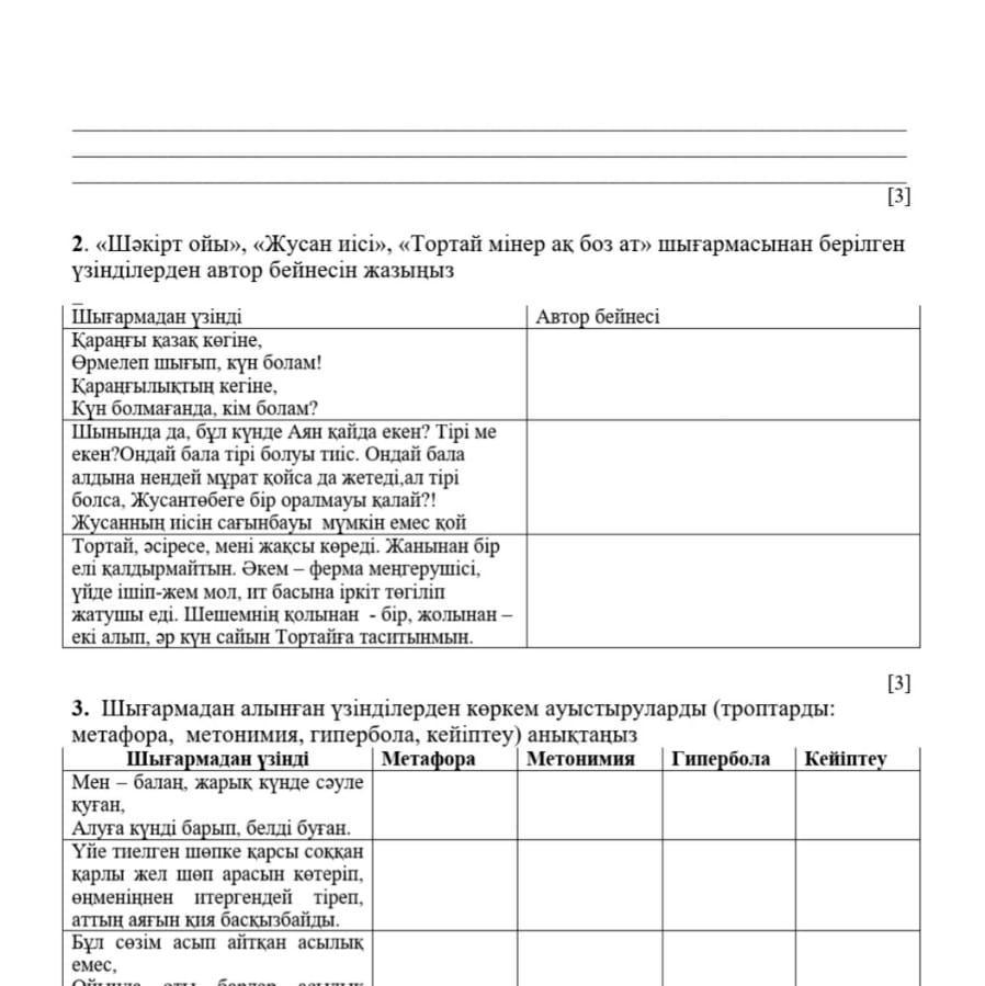 2. «Шәкірт ойы», «Жусан иісі», «Тортай мінер ақ боз ат» шығармасынан берілген