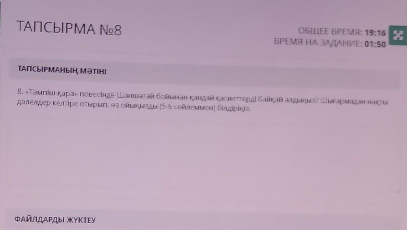 Тəмпіш қара повесіндегі кейіпкер Шаншатайдың бойынан əдептілік,ұқыптылық,кішіпейілдік,сыпайылық сияқты қасиеттерді көрдім.