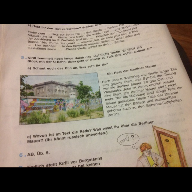 С)О чём идёт речь в тексте?Что вы знаете о Берлинской стене?(можете рассказать по-русски).
